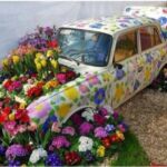 Květinami se dá osázet v podstatě cokoliv. Každý z nás má zajisté nějakou pěknou kvetoucí rostlinku v květináči na zahradě nebo v závěsném truhlíku na balkóně. Napadlo vás však někdy osázet kolo, auto, staré boty, trakař, vanu nebo jiné věci, které se vám válejí na chatě nebo chalupě? Podívejte se, jak taková zahradní dekorace vypadá.